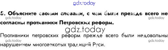 На страницах сайта gdz.today вы найдете учебный и вспомогательный материал, направленный на улучшения знаний школьной программы. ГДЗ - онлайн мир знаний Вопросы и задания §9 5 Учебнику по Истории России для 8 класса Арсентьев, Курукин Просвещение 2016
