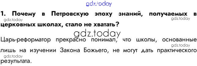 На страницах сайта gdz.today вы найдете учебный и вспомогательный материал, направленный на улучшения знаний школьной программы. ГДЗ - онлайн мир знаний Вопросы и задания §10 1 Учебнику по Истории России для 8 класса Арсентьев, Курукин Просвещение 2016