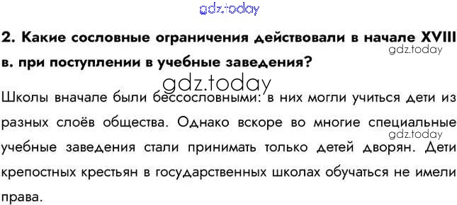 На страницах сайта gdz.today вы найдете учебный и вспомогательный материал, направленный на улучшения знаний школьной программы. ГДЗ - онлайн мир знаний Вопросы и задания §10 2 Учебнику по Истории России для 8 класса Арсентьев, Курукин Просвещение 2016