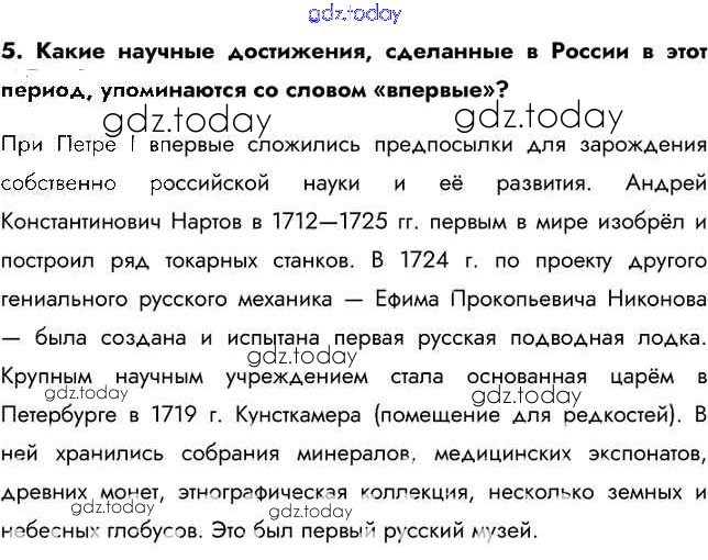 На страницах сайта gdz.today вы найдете учебный и вспомогательный материал, направленный на улучшения знаний школьной программы. ГДЗ - онлайн мир знаний Вопросы и задания §10 5 Учебнику по Истории России для 8 класса Арсентьев, Курукин Просвещение 2016