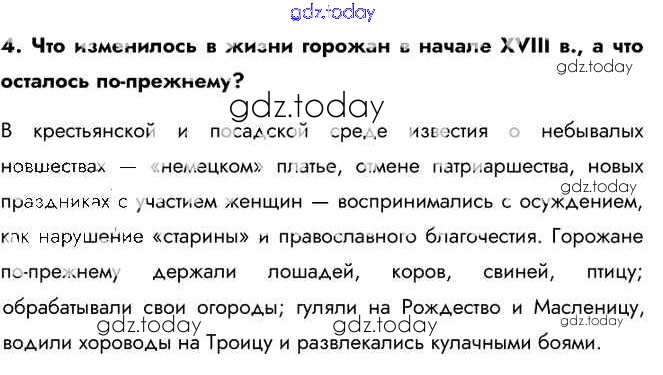 На страницах сайта gdz.today вы найдете учебный и вспомогательный материал, направленный на улучшения знаний школьной программы. ГДЗ - онлайн мир знаний Вопросы и задания §11 4 Учебнику по Истории России для 8 класса Арсентьев, Курукин Просвещение 2016