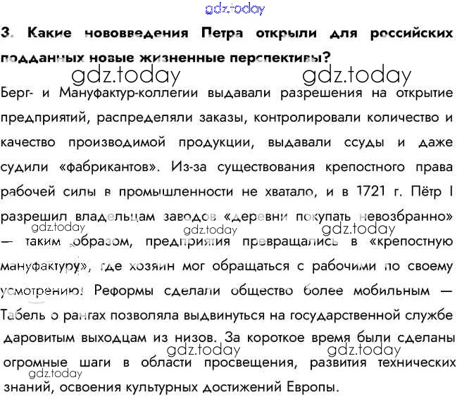 На страницах сайта gdz.today вы найдете учебный и вспомогательный материал, направленный на улучшения знаний школьной программы. ГДЗ - онлайн мир знаний Вопросы и задания §12 3 Учебнику по Истории России для 8 класса Арсентьев, Курукин Просвещение 2016