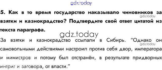 На страницах сайта gdz.today вы найдете учебный и вспомогательный материал, направленный на улучшения знаний школьной программы. ГДЗ - онлайн мир знаний Вопросы и задания §15 5 Учебнику по Истории России для 8 класса Арсентьев, Курукин Просвещение 2016