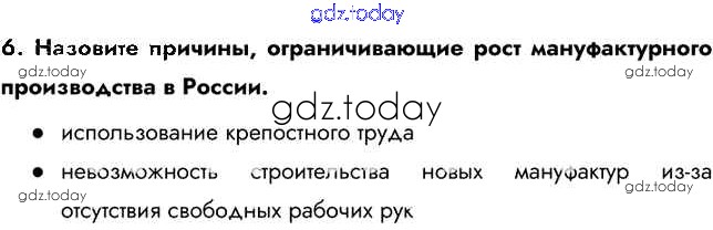 На страницах сайта gdz.today вы найдете учебный и вспомогательный материал, направленный на улучшения знаний школьной программы. ГДЗ - онлайн мир знаний Вопросы и задания §15 6 Учебнику по Истории России для 8 класса Арсентьев, Курукин Просвещение 2016