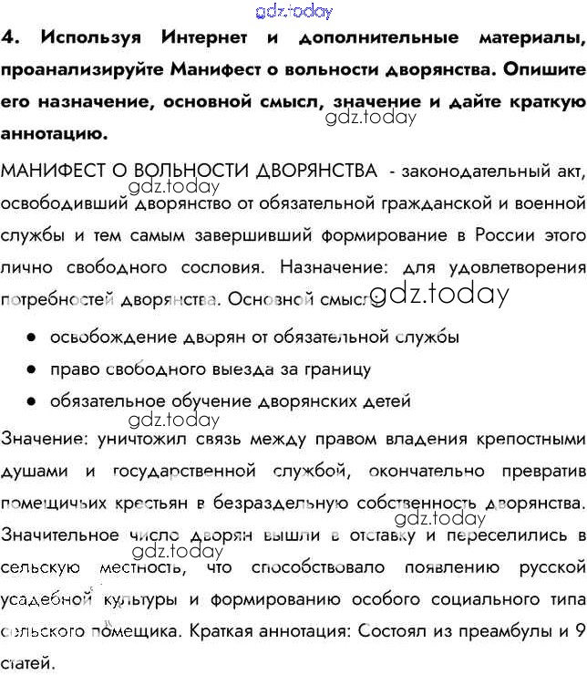 На страницах сайта gdz.today вы найдете учебный и вспомогательный материал, направленный на улучшения знаний школьной программы. ГДЗ - онлайн мир знаний Думаем, сравниваем, размышляем §15 4 Учебнику по Истории России для 8 класса Арсентьев, Курукин Просвещение 2016