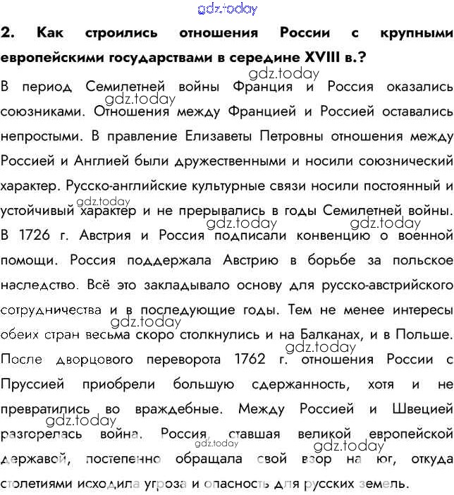 На страницах сайта gdz.today вы найдете учебный и вспомогательный материал, направленный на улучшения знаний школьной программы. ГДЗ - онлайн мир знаний Думаем, сравниваем, размышляем §17 2 Учебнику по Истории России для 8 класса Арсентьев, Курукин Просвещение 2016