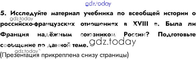 На страницах сайта gdz.today вы найдете учебный и вспомогательный материал, направленный на улучшения знаний школьной программы. ГДЗ - онлайн мир знаний Думаем, сравниваем, размышляем §17 5 Учебнику по Истории России для 8 класса Арсентьев, Курукин Просвещение 2016