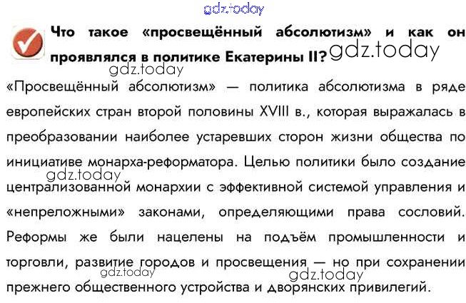На страницах сайта gdz.today вы найдете учебный и вспомогательный материал, направленный на улучшения знаний школьной программы. ГДЗ - онлайн мир знаний Вопросы в начале параграфа §18 1 Учебнику по Истории России для 8 класса Арсентьев, Курукин Просвещение 2016