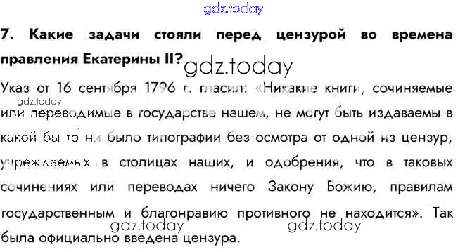 На страницах сайта gdz.today вы найдете учебный и вспомогательный материал, направленный на улучшения знаний школьной программы. ГДЗ - онлайн мир знаний Вопросы и задания §18 7 Учебнику по Истории России для 8 класса Арсентьев, Курукин Просвещение 2016