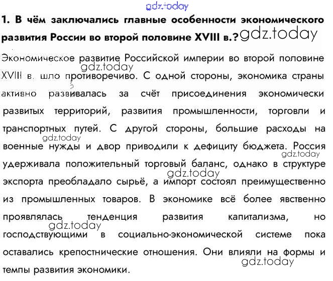 На страницах сайта gdz.today вы найдете учебный и вспомогательный материал, направленный на улучшения знаний школьной программы. ГДЗ - онлайн мир знаний Вопросы и задания §19 1 Учебнику по Истории России для 8 класса Арсентьев, Курукин Просвещение 2016