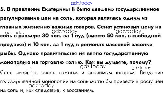На страницах сайта gdz.today вы найдете учебный и вспомогательный материал, направленный на улучшения знаний школьной программы. ГДЗ - онлайн мир знаний Думаем, сравниваем, размышляем §19 5 Учебнику по Истории России для 8 класса Арсентьев, Курукин Просвещение 2016
