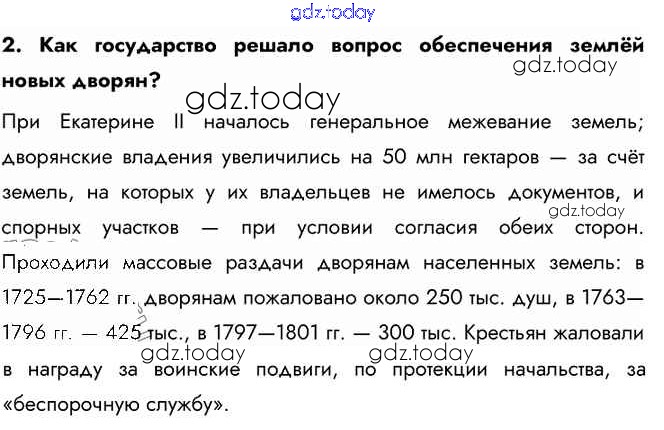 На страницах сайта gdz.today вы найдете учебный и вспомогательный материал, направленный на улучшения знаний школьной программы. ГДЗ - онлайн мир знаний Вопросы и задания §20 2 Учебнику по Истории России для 8 класса Арсентьев, Курукин Просвещение 2016