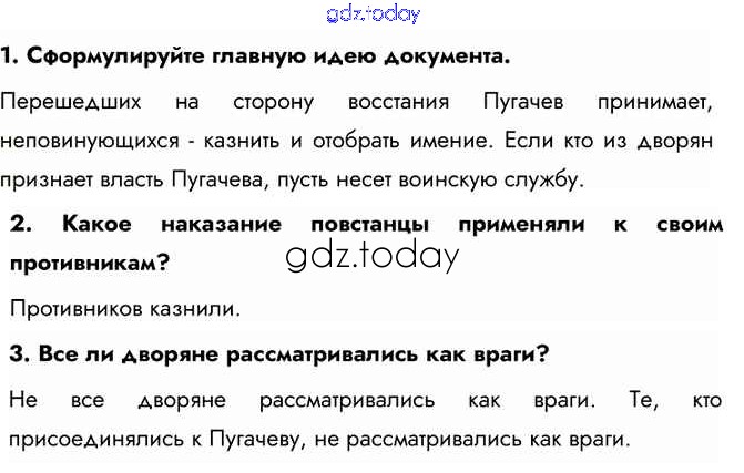 Ответы к Изучаем документ §21 стр.32 Учебнику по Истории России для 8 класса Арсентьев, Курукин Просвещение 2016