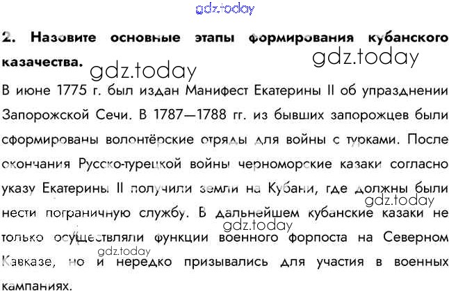 На страницах сайта gdz.today вы найдете учебный и вспомогательный материал, направленный на улучшения знаний школьной программы. ГДЗ - онлайн мир знаний Вопросы и задания Народы России. Национальная и религиозная политика Екатерины II 2 Учебнику по Истории России для 8 класса Арсентьев, Курукин Просвещение 2016