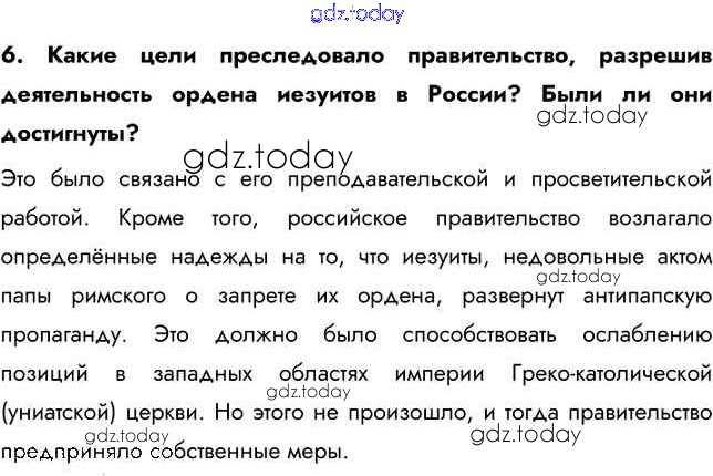 На страницах сайта gdz.today вы найдете учебный и вспомогательный материал, направленный на улучшения знаний школьной программы. ГДЗ - онлайн мир знаний Вопросы и задания Народы России. Национальная и религиозная политика Екатерины II 6 Учебнику по Истории России для 8 класса Арсентьев, Курукин Просвещение 2016