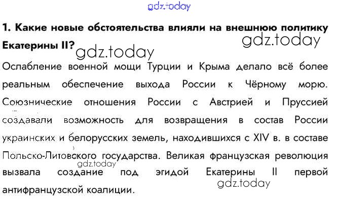 На страницах сайта gdz.today вы найдете учебный и вспомогательный материал, направленный на улучшения знаний школьной программы. ГДЗ - онлайн мир знаний Вопросы и задания §22 1 Учебнику по Истории России для 8 класса Арсентьев, Курукин Просвещение 2016
