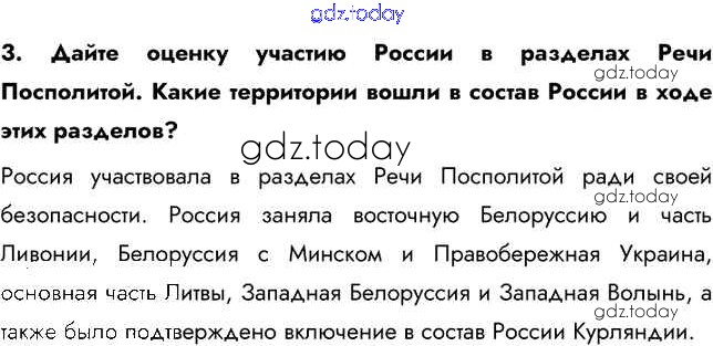 На страницах сайта gdz.today вы найдете учебный и вспомогательный материал, направленный на улучшения знаний школьной программы. ГДЗ - онлайн мир знаний Вопросы и задания §22 3 Учебнику по Истории России для 8 класса Арсентьев, Курукин Просвещение 2016