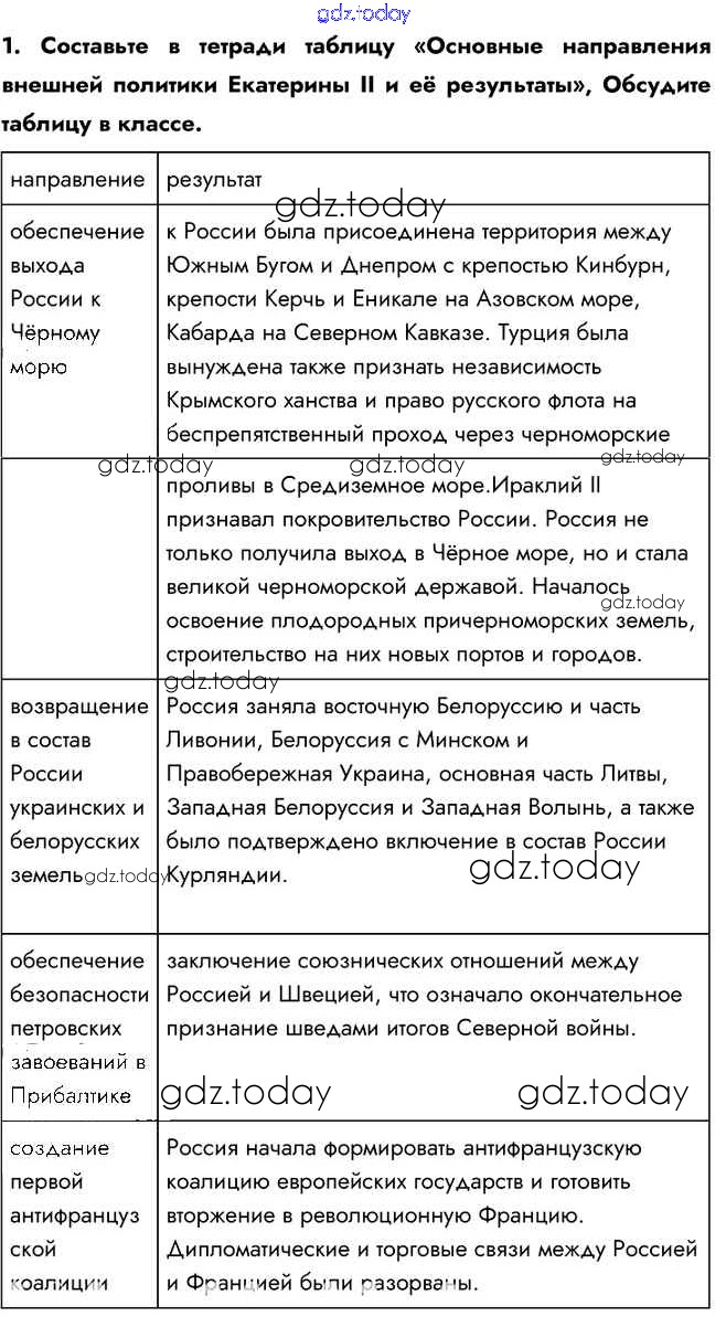 На страницах сайта gdz.today вы найдете учебный и вспомогательный материал, направленный на улучшения знаний школьной программы. ГДЗ - онлайн мир знаний Думаем, сравниваем, размышляем §22 1 Учебнику по Истории России для 8 класса Арсентьев, Курукин Просвещение 2016