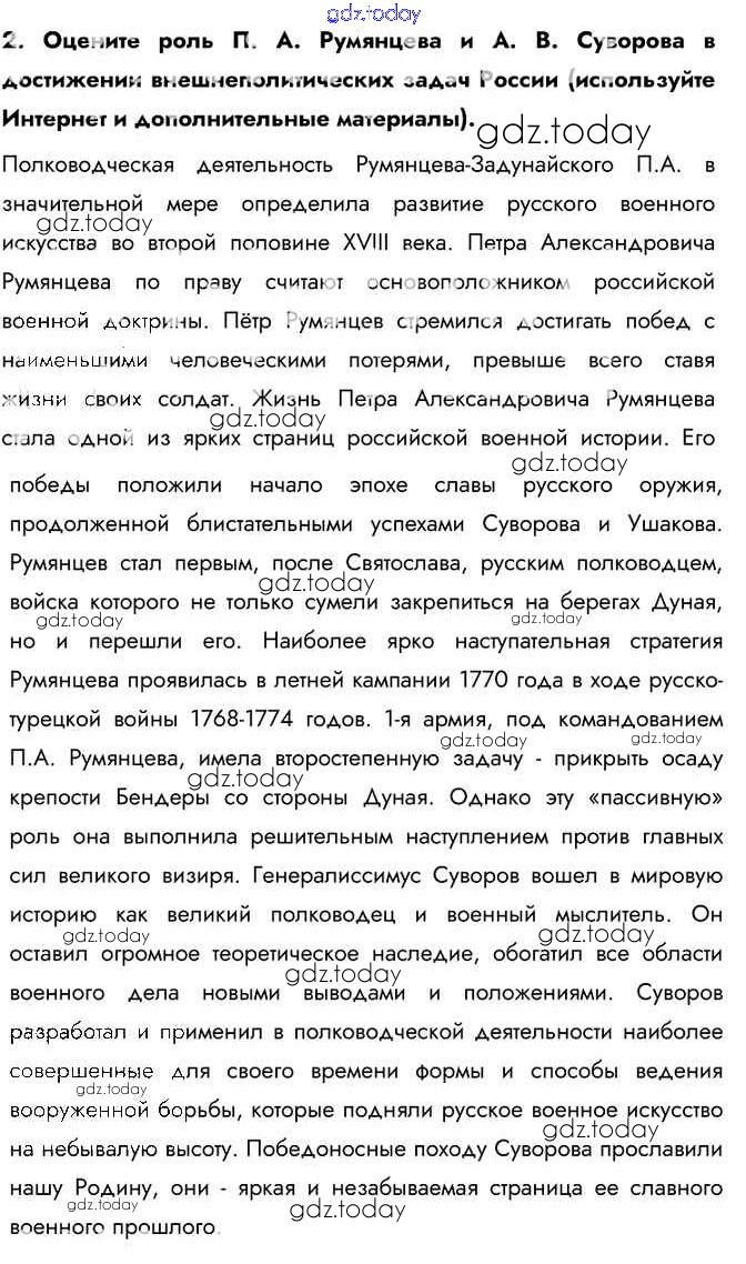 На страницах сайта gdz.today вы найдете учебный и вспомогательный материал, направленный на улучшения знаний школьной программы. ГДЗ - онлайн мир знаний Думаем, сравниваем, размышляем §22 2 Учебнику по Истории России для 8 класса Арсентьев, Курукин Просвещение 2016
