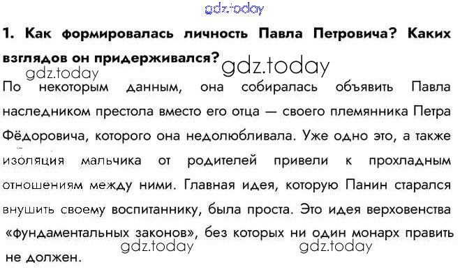 На страницах сайта gdz.today вы найдете учебный и вспомогательный материал, направленный на улучшения знаний школьной программы. ГДЗ - онлайн мир знаний Вопросы и задания §24 1 Учебнику по Истории России для 8 класса Арсентьев, Курукин Просвещение 2016