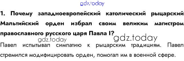 На страницах сайта gdz.today вы найдете учебный и вспомогательный материал, направленный на улучшения знаний школьной программы. ГДЗ - онлайн мир знаний Думаем, сравниваем, размышляем §25 1 Учебнику по Истории России для 8 класса Арсентьев, Курукин Просвещение 2016
