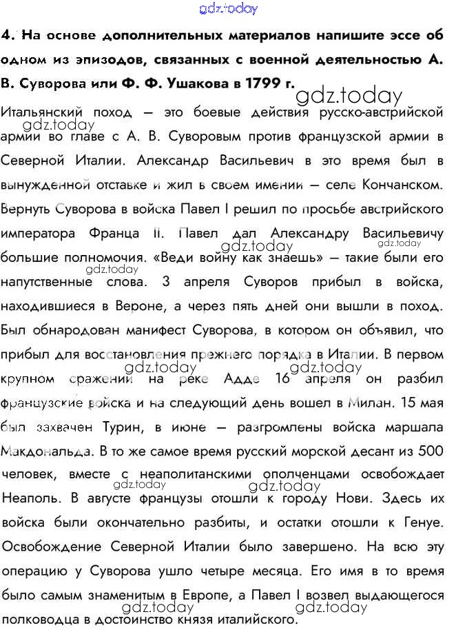 На страницах сайта gdz.today вы найдете учебный и вспомогательный материал, направленный на улучшения знаний школьной программы. ГДЗ - онлайн мир знаний Думаем, сравниваем, размышляем §25 4 Учебнику по Истории России для 8 класса Арсентьев, Курукин Просвещение 2016