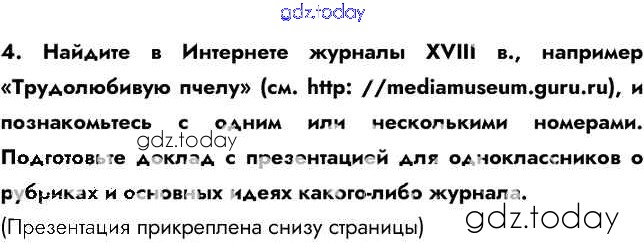 На страницах сайта gdz.today вы найдете учебный и вспомогательный материал, направленный на улучшения знаний школьной программы. ГДЗ - онлайн мир знаний Думаем, сравниваем, размышляем Общественная мысль, публицистика, литература, пресса 4 Учебнику по Истории России для 8 класса Арсентьев, Курукин Просвещение 2016