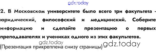 На страницах сайта gdz.today вы найдете учебный и вспомогательный материал, направленный на улучшения знаний школьной программы. ГДЗ - онлайн мир знаний Думаем, сравниваем, размышляем Образование в России в XVIII в. 2 Учебнику по Истории России для 8 класса Арсентьев, Курукин Просвещение 2016