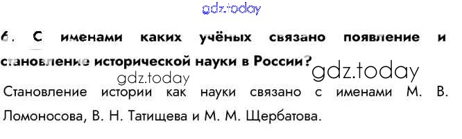 На страницах сайта gdz.today вы найдете учебный и вспомогательный материал, направленный на улучшения знаний школьной программы. ГДЗ - онлайн мир знаний Вопросы и задания Российская наука и техника в XVIII в. 6 Учебнику по Истории России для 8 класса Арсентьев, Курукин Просвещение 2016