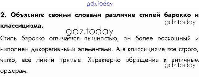 На страницах сайта gdz.today вы найдете учебный и вспомогательный материал, направленный на улучшения знаний школьной программы. ГДЗ - онлайн мир знаний Вопросы и задания Русская архитектура XVIII в. 2 Учебнику по Истории России для 8 класса Арсентьев, Курукин Просвещение 2016
