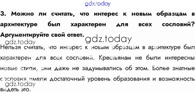 На страницах сайта gdz.today вы найдете учебный и вспомогательный материал, направленный на улучшения знаний школьной программы. ГДЗ - онлайн мир знаний Вопросы и задания Русская архитектура XVIII в. 3 Учебнику по Истории России для 8 класса Арсентьев, Курукин Просвещение 2016