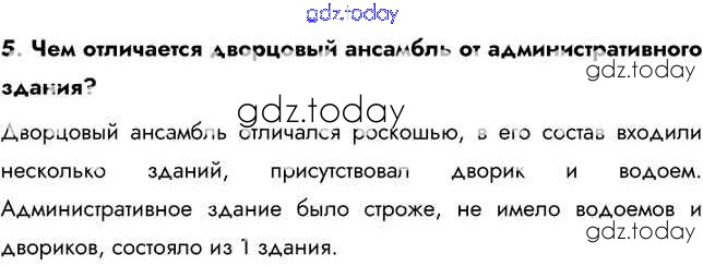 На страницах сайта gdz.today вы найдете учебный и вспомогательный материал, направленный на улучшения знаний школьной программы. ГДЗ - онлайн мир знаний Вопросы и задания Русская архитектура XVIII в. 5 Учебнику по Истории России для 8 класса Арсентьев, Курукин Просвещение 2016