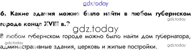 На страницах сайта gdz.today вы найдете учебный и вспомогательный материал, направленный на улучшения знаний школьной программы. ГДЗ - онлайн мир знаний Вопросы и задания Русская архитектура XVIII в. 6 Учебнику по Истории России для 8 класса Арсентьев, Курукин Просвещение 2016