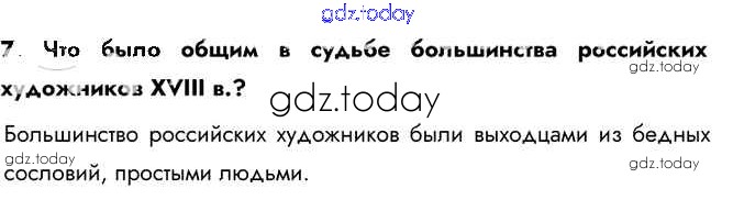На страницах сайта gdz.today вы найдете учебный и вспомогательный материал, направленный на улучшения знаний школьной программы. ГДЗ - онлайн мир знаний Вопросы и задания Живопись и скульптура 7 Учебнику по Истории России для 8 класса Арсентьев, Курукин Просвещение 2016
