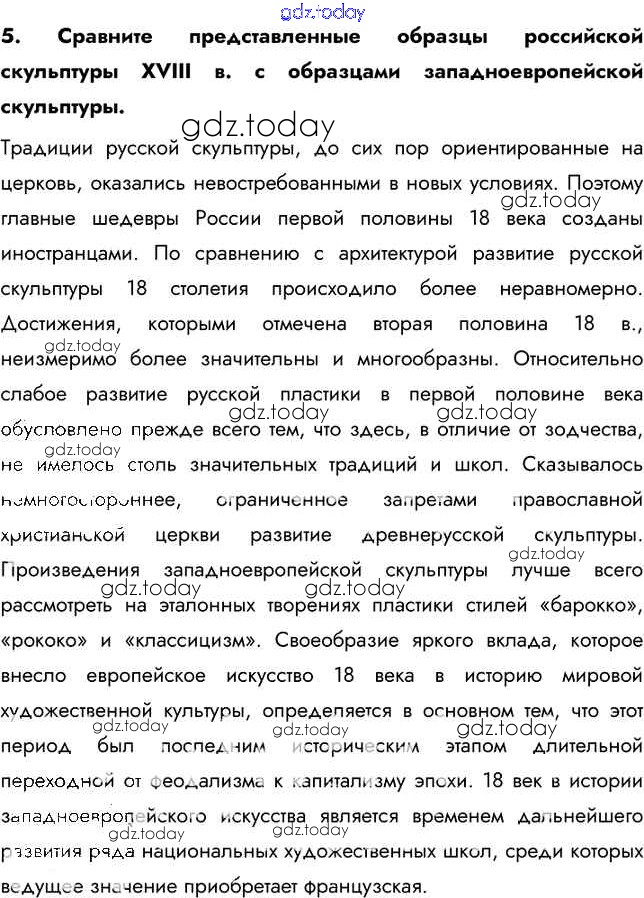 На страницах сайта gdz.today вы найдете учебный и вспомогательный материал, направленный на улучшения знаний школьной программы. ГДЗ - онлайн мир знаний Думаем, сравниваем, размышляем Живопись и скульптура 5 Учебнику по Истории России для 8 класса Арсентьев, Курукин Просвещение 2016