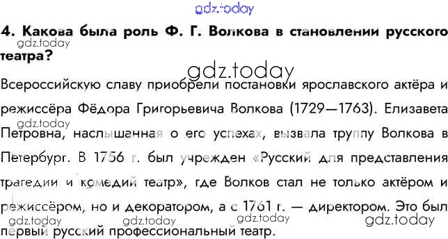 На страницах сайта gdz.today вы найдете учебный и вспомогательный материал, направленный на улучшения знаний школьной программы. ГДЗ - онлайн мир знаний Вопросы и задания Музыкальное и театральное искусство 4 Учебнику по Истории России для 8 класса Арсентьев, Курукин Просвещение 2016