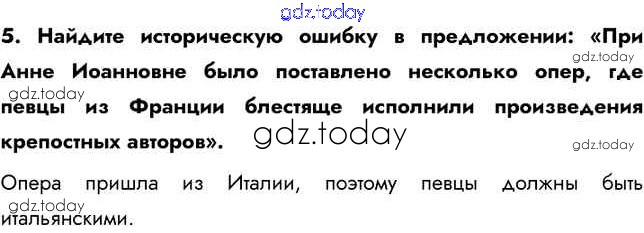 На страницах сайта gdz.today вы найдете учебный и вспомогательный материал, направленный на улучшения знаний школьной программы. ГДЗ - онлайн мир знаний Вопросы и задания Музыкальное и театральное искусство 5 Учебнику по Истории России для 8 класса Арсентьев, Курукин Просвещение 2016