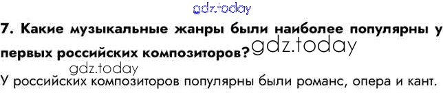 На страницах сайта gdz.today вы найдете учебный и вспомогательный материал, направленный на улучшения знаний школьной программы. ГДЗ - онлайн мир знаний Вопросы и задания Музыкальное и театральное искусство 7 Учебнику по Истории России для 8 класса Арсентьев, Курукин Просвещение 2016