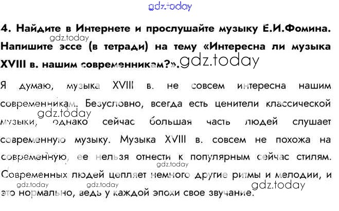На страницах сайта gdz.today вы найдете учебный и вспомогательный материал, направленный на улучшения знаний школьной программы. ГДЗ - онлайн мир знаний Думаем, сравниваем, размышляем Музыкальное и театральное искусство 4 Учебнику по Истории России для 8 класса Арсентьев, Курукин Просвещение 2016