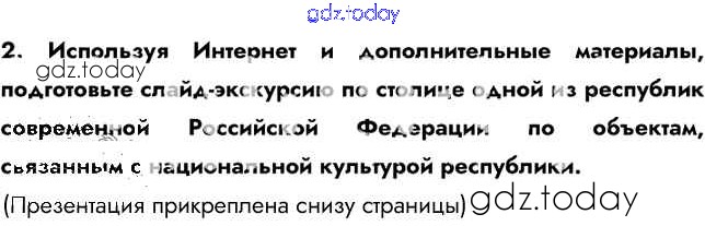 На страницах сайта gdz.today вы найдете учебный и вспомогательный материал, направленный на улучшения знаний школьной программы. ГДЗ - онлайн мир знаний Думаем, сравниваем, размышляем Народы России в XVIII в. 2 Учебнику по Истории России для 8 класса Арсентьев, Курукин Просвещение 2016
