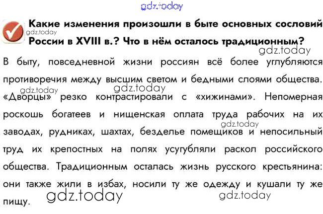 На страницах сайта gdz.today вы найдете учебный и вспомогательный материал, направленный на улучшения знаний школьной программы. ГДЗ - онлайн мир знаний Вопросы в начале параграфа §26 1 Учебнику по Истории России для 8 класса Арсентьев, Курукин Просвещение 2016