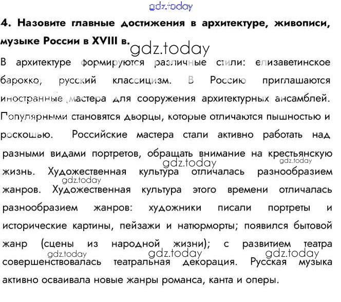 На страницах сайта gdz.today вы найдете учебный и вспомогательный материал, направленный на улучшения знаний школьной программы. ГДЗ - онлайн мир знаний Повторяем и делаем выводы Решение к главе 5 4 Учебнику по Истории России для 8 класса Арсентьев, Курукин Просвещение 2016
