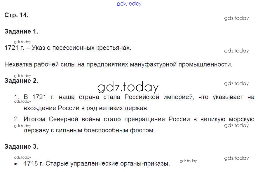 На страницах сайта gdz.today вы найдете учебный и вспомогательный материал, направленный на улучшения знаний школьной программы. ГДЗ - онлайн мир знаний Страницы (решение) 14 Контрольным работам по Истории России для 8 класса Артасов Просвещение УМК 2016