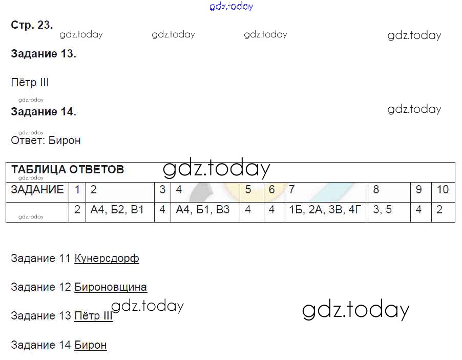 На страницах сайта gdz.today вы найдете учебный и вспомогательный материал, направленный на улучшения знаний школьной программы. ГДЗ - онлайн мир знаний Страницы (решение) 23 Контрольным работам по Истории России для 8 класса Артасов Просвещение УМК 2016