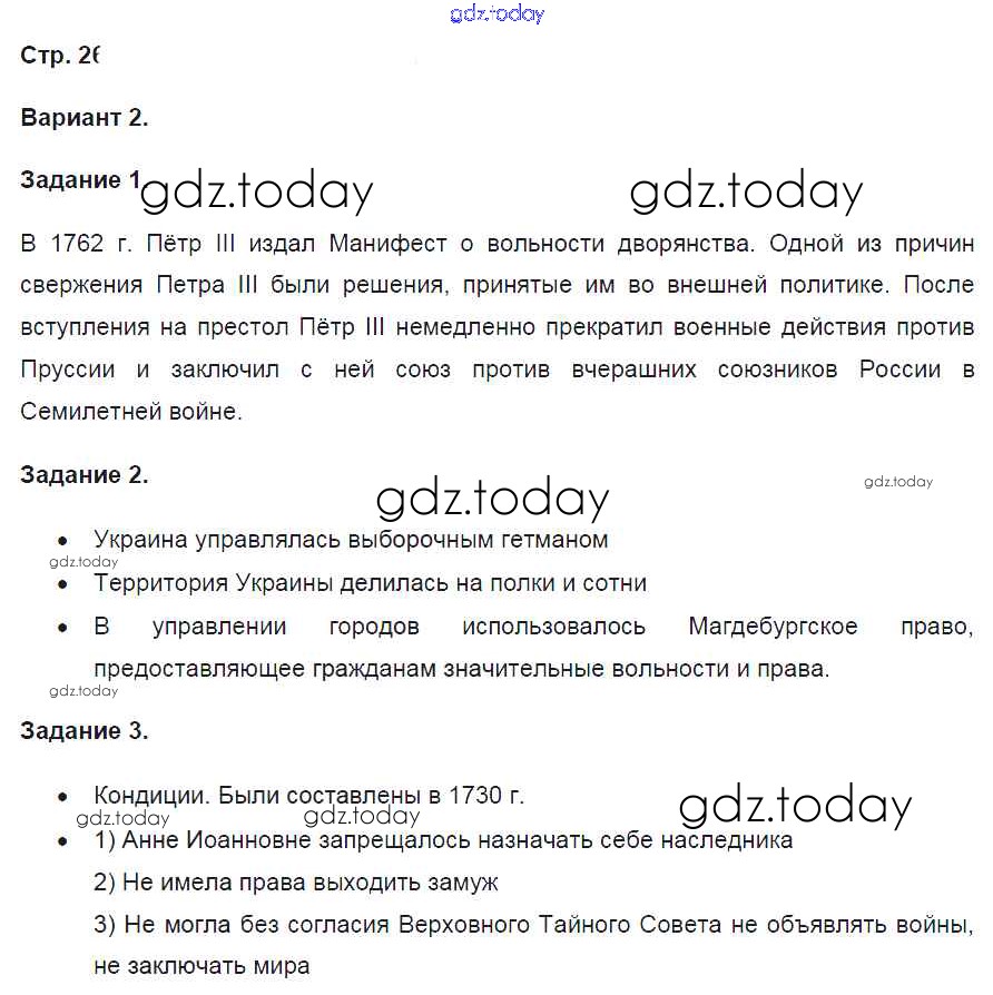 На страницах сайта gdz.today вы найдете учебный и вспомогательный материал, направленный на улучшения знаний школьной программы. ГДЗ - онлайн мир знаний Страницы (решение) 26 Контрольным работам по Истории России для 8 класса Артасов Просвещение УМК 2016