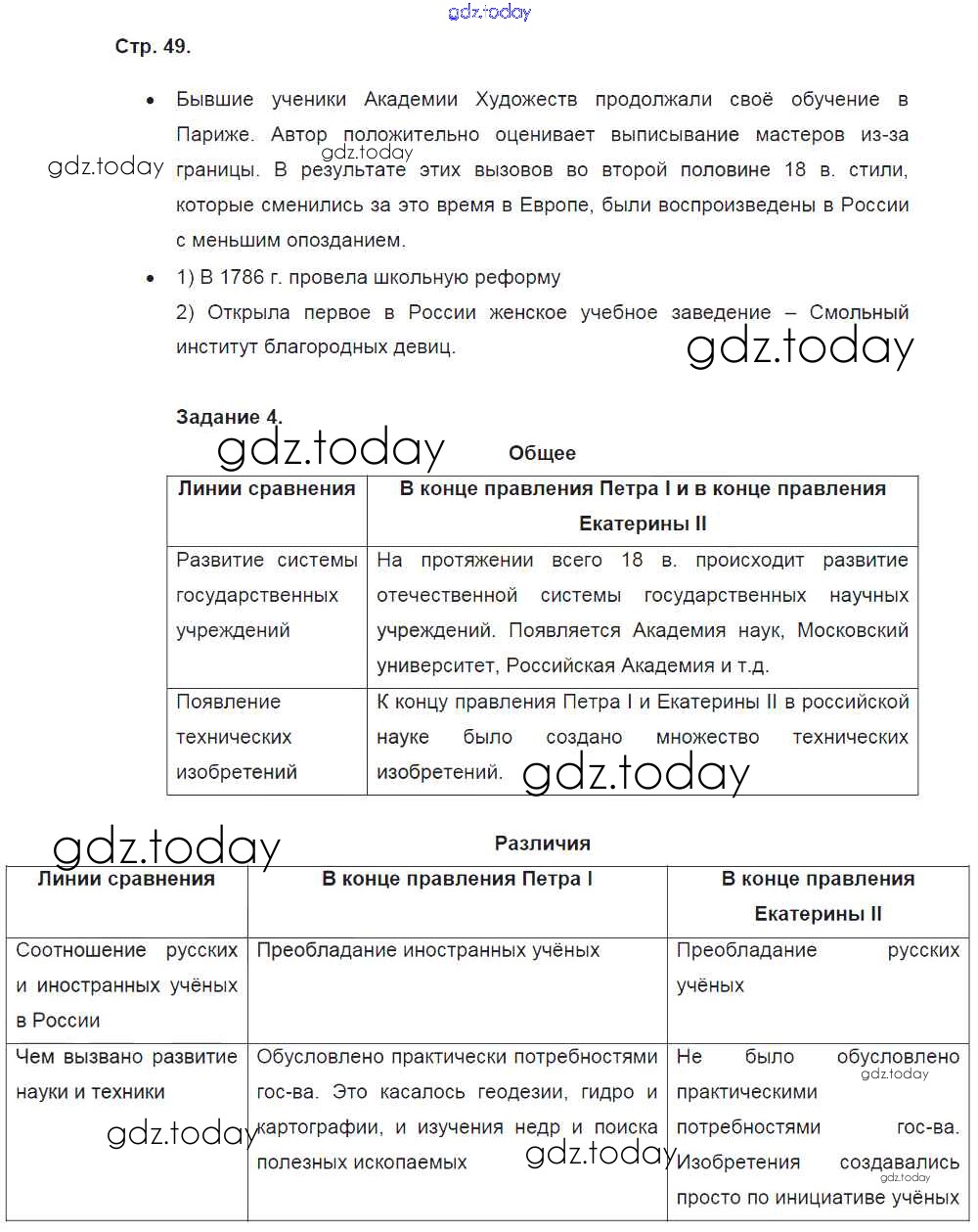 На страницах сайта gdz.today вы найдете учебный и вспомогательный материал, направленный на улучшения знаний школьной программы. ГДЗ - онлайн мир знаний Страницы (решение) 49 Контрольным работам по Истории России для 8 класса Артасов Просвещение УМК 2016