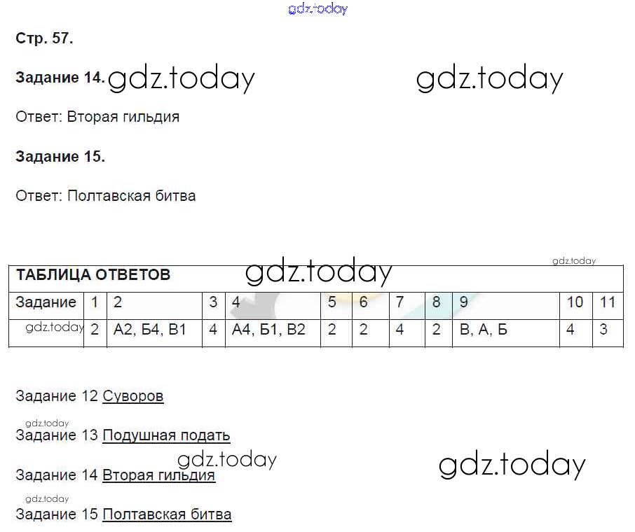 На страницах сайта gdz.today вы найдете учебный и вспомогательный материал, направленный на улучшения знаний школьной программы. ГДЗ - онлайн мир знаний Страницы (решение) 57 Контрольным работам по Истории России для 8 класса Артасов Просвещение УМК 2016