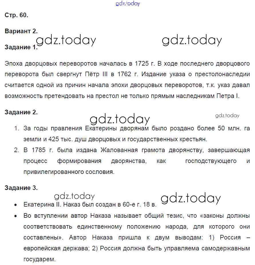 На страницах сайта gdz.today вы найдете учебный и вспомогательный материал, направленный на улучшения знаний школьной программы. ГДЗ - онлайн мир знаний Страницы (решение) 60 Контрольным работам по Истории России для 8 класса Артасов Просвещение УМК 2016