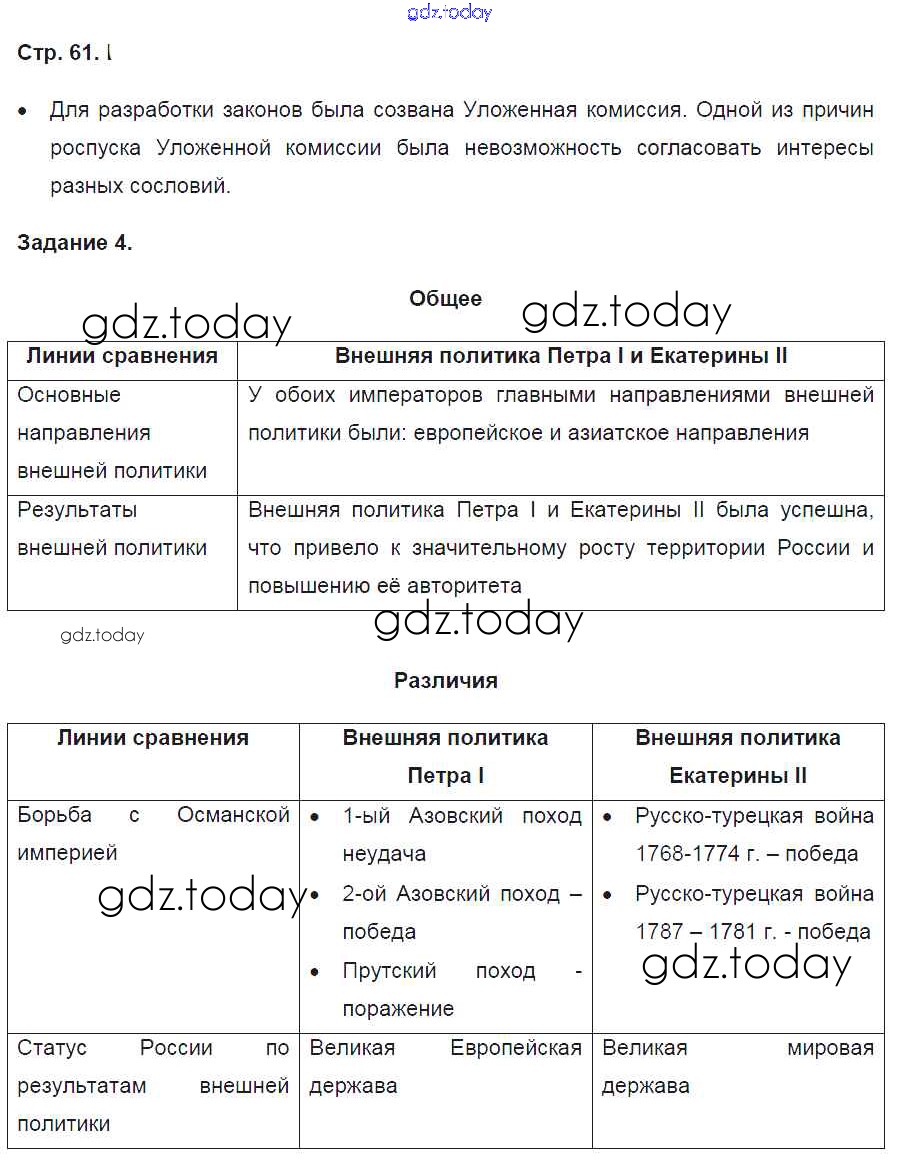 На страницах сайта gdz.today вы найдете учебный и вспомогательный материал, направленный на улучшения знаний школьной программы. ГДЗ - онлайн мир знаний Страницы (решение) 61 Контрольным работам по Истории России для 8 класса Артасов Просвещение УМК 2016