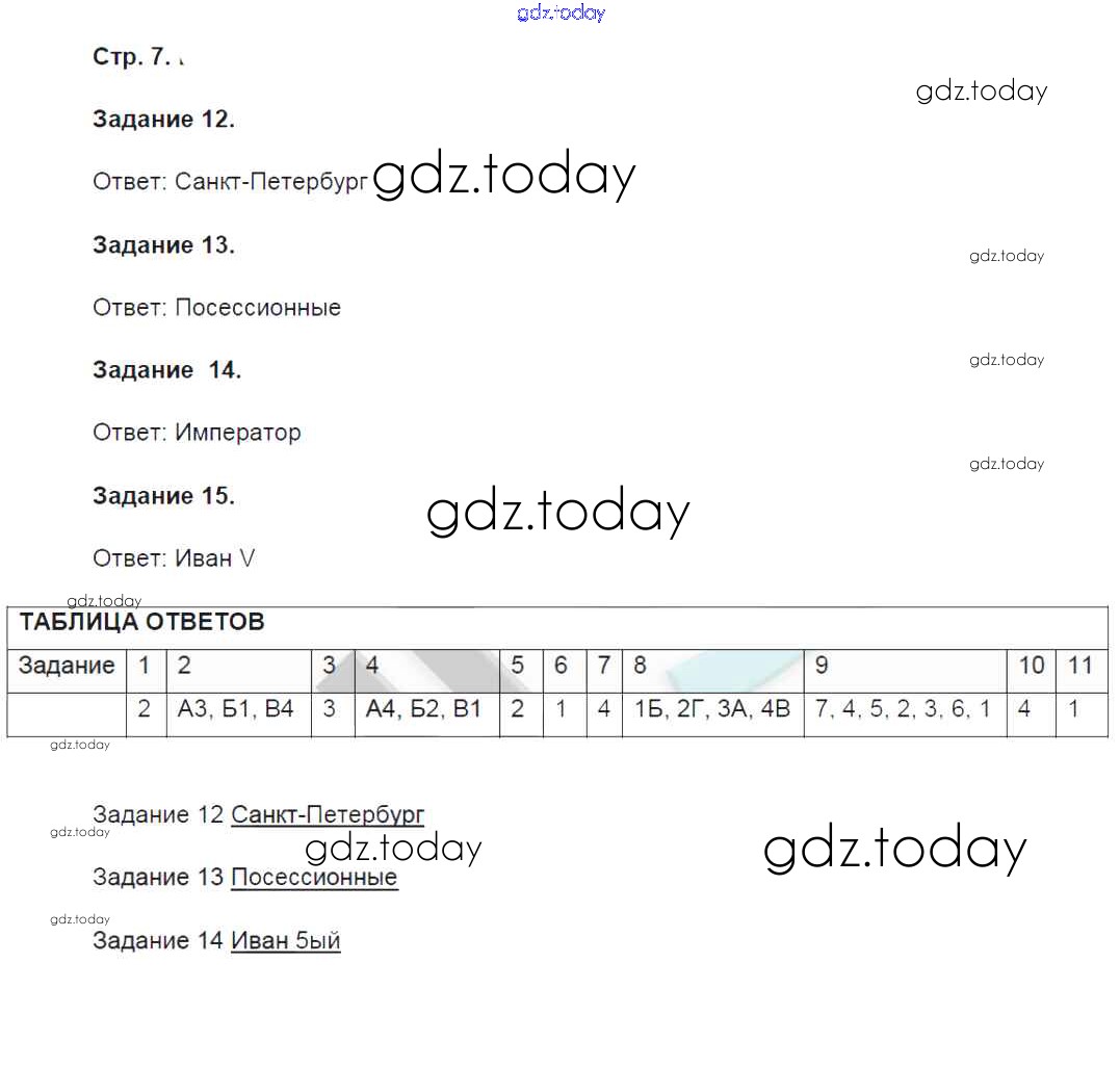 Ответы к Страницы (решение) 7 Контрольным работам по Истории России для 8 класса Артасов Просвещение УМК 2016